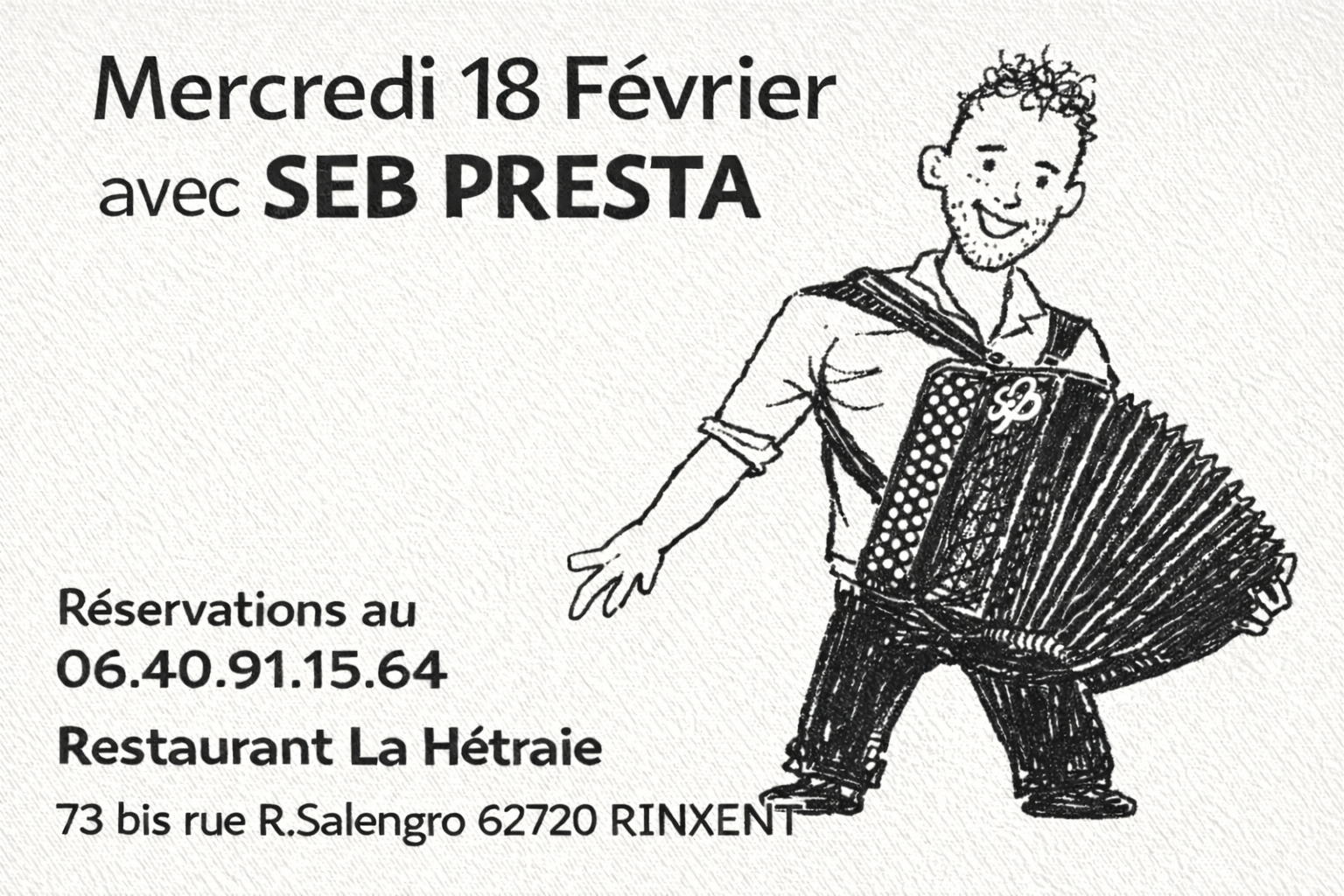 Réservations au : 06.40.91.15.64